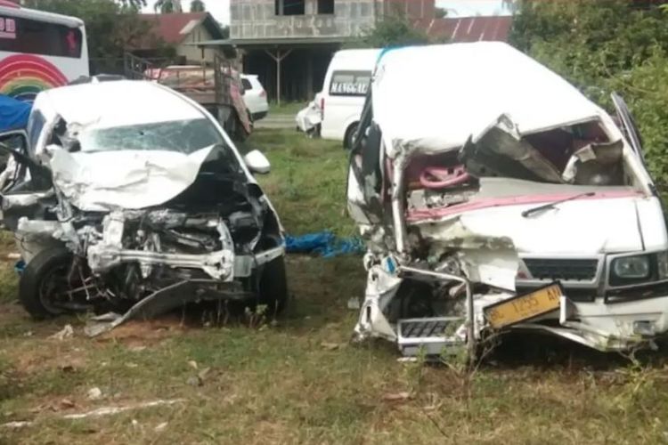 Kecelakaan adu banteng antara Daihatsu Xenia dan Mitsubishi L300 terjadi di Aceh, Rabu (8/6/2022). Bermula dari sikat lajur kanan