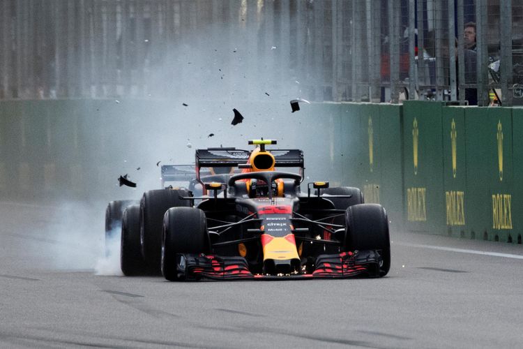 Red Bull Racing punya memori memalukan double DNF di F1 Azerbaijan 2018, Daniel Ricciardo dan Max Verstappen tabrakan.