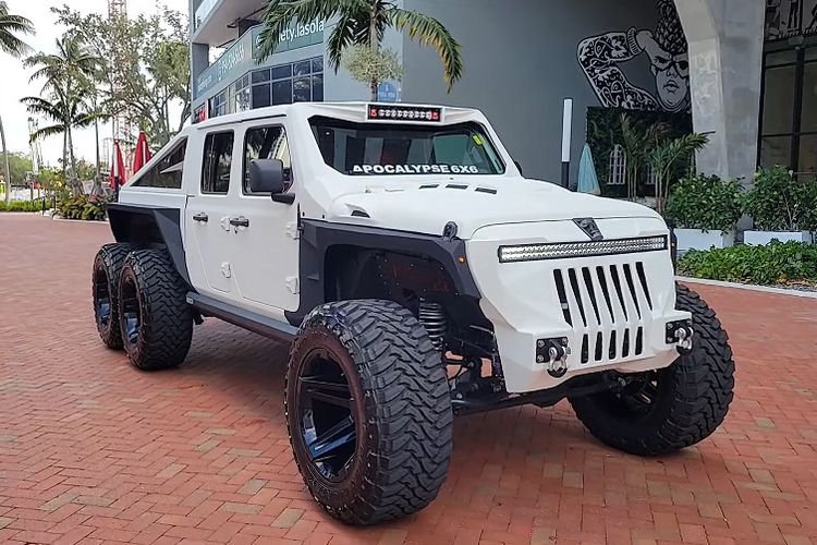 Modifikasi Jeep Gladiator Hellfire 6x6 bertampang sangar garapan Apocalypse Manufacturing asal Amerika Serikat. Simak ulasannya