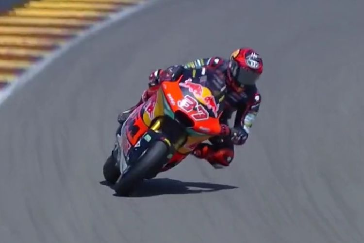 Augusto Fernandez tampil dominan pada saat FP1 Moto2 Jerman 2022, Jumat (17/06/2022). Pembalap tim Indonesia justru bisa tampil menjanjikan.