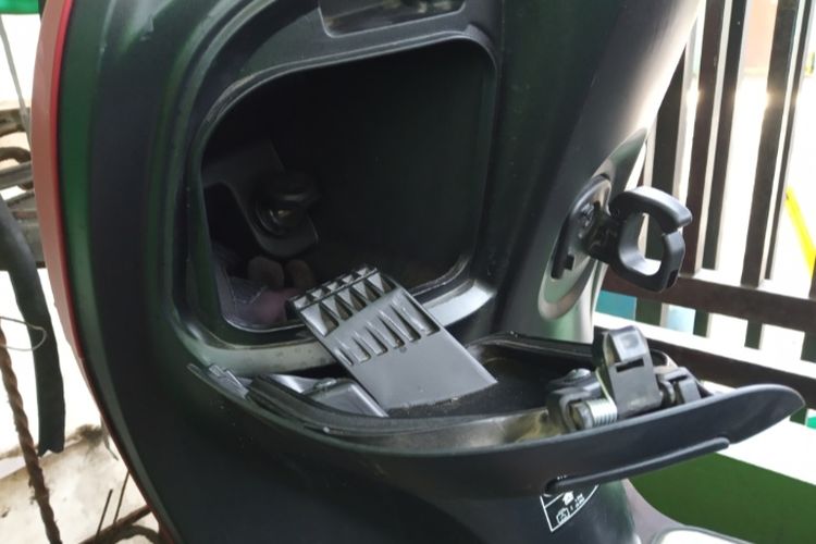 Supaya lebih aman, sobat bisa menambahkan pengunci otomatis pada penutup kompartemen yang ada di motor.
