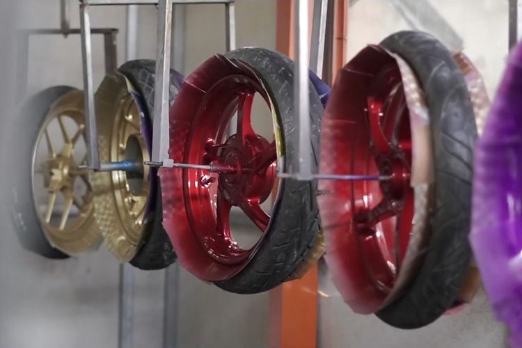 Tidak perlu meninggalkan motor lama-lama, proses cat pelek di Surya Painting 18 hanya perlu waktu 100 menit, ban masih nempel.