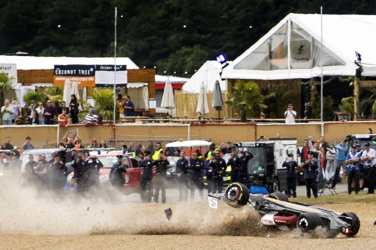 Beginilah kondisi mobil Alfa Romeo yang dikendarai Guanyu Zhou usai kecelakaan parah lap pertama F1 Inggris 2022.