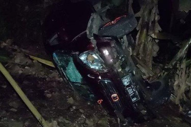 Sebuah Honda CR-V terjun ke jurang sedalam 15 meter gara-gara rem blong saat melintas di Jalan Raya Kalipucang-Pangandaran.