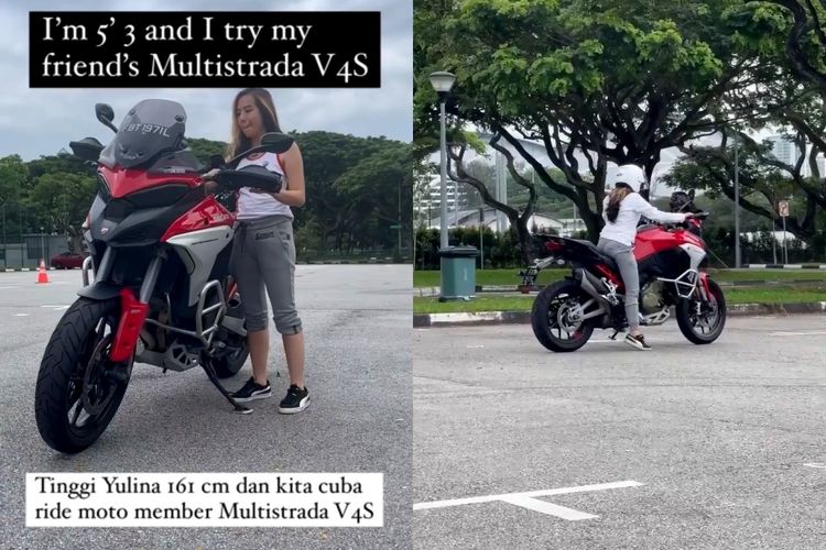 Biker cantik asal Malaysia, Ros Yulina sukses bikin netizen melongo. Coba naik Ducati Multistrada V4S meski kudu jinjit, ternyata...