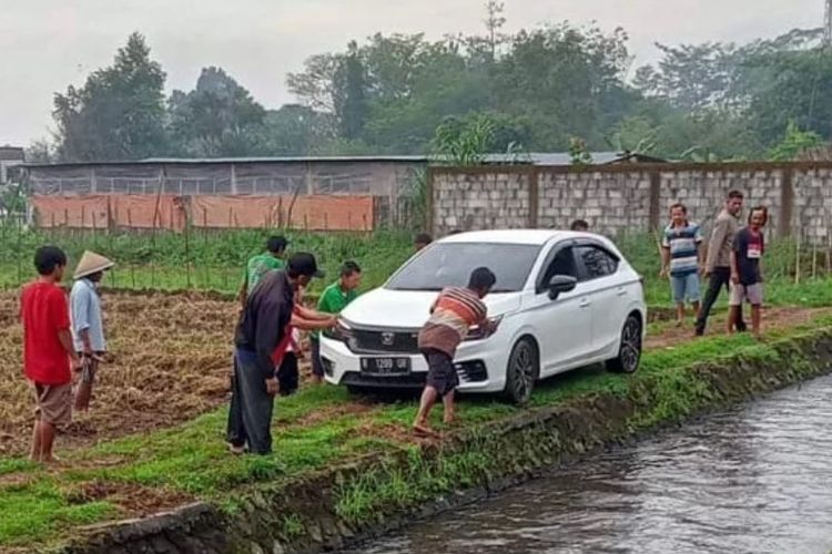 Sebuah Honda City Hatchback jadi korban Google Maps hingga masuk area persawahan, warganet katakan itu salah settingan.