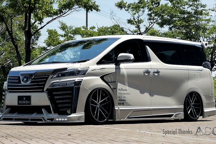 Modifikasi Toyota Vellfire garapan Rowen, Jepang ini sudah tampil menawan pasang body kit agresif dan setup kaki-kaki melata. Simak ulasannya