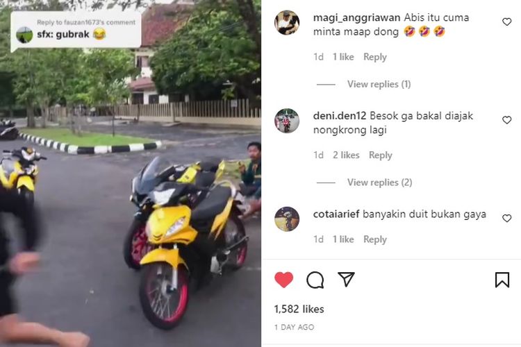 Ulah iseng pemuda ini bikin pemilik Yamaha R15 nyesek. Tak kuat tahan Jupiter MX 135 yang oleh karena ulahnya, R15 berakhir rebahan.