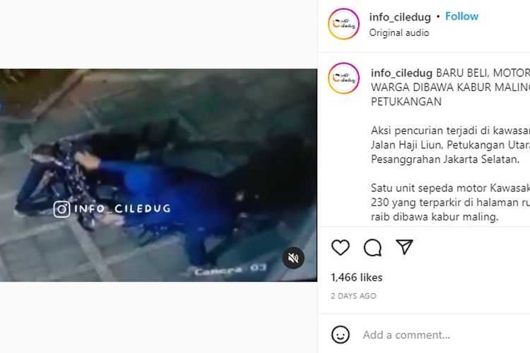 Beredar rekaman CCTV aksi maling yang gondol Kawasaki KLX 230 di Pesanggrahan, Jakarta Selatan, Rabu (27/07/2022). Unitnya baru dibeli pula.