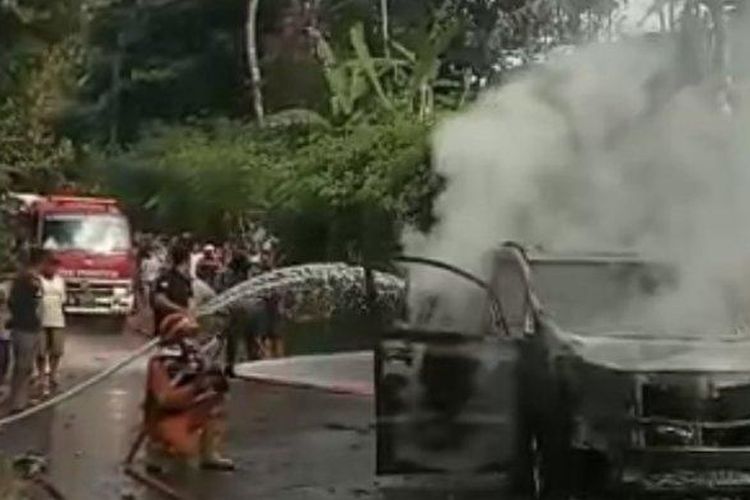 Sebuah Toyota Alphard ludes terbakar di Ungaran, Semarang saat melaju di jalan, saksi mata menduga karena korsleting listrik.