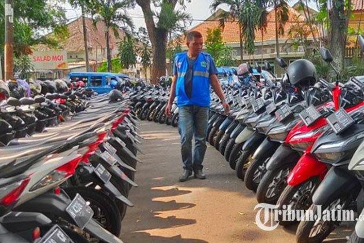 Seorang jukir di SMA N 3 Kota Malang berhasil curi perhatian wisatawan, parkirkan motor pelajar layaknya dealer motkas.