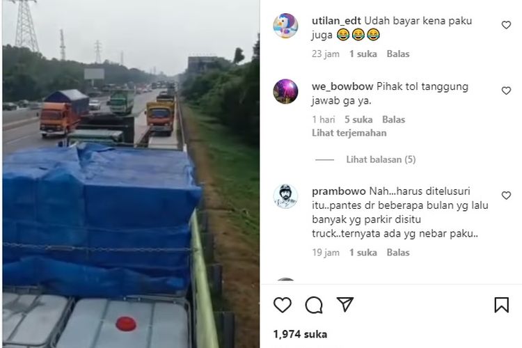 Viral Video Puluhan Mobil dan Truk Jadi Korban Tumpahan Paku di Jalan Tol, Jasa Marga Buka Suara