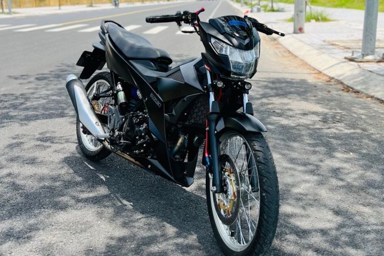 Mendapatkan modifikasi yang cukup impresif, Suzuki Satria F150 ini jadi tampil misterius, elegan, dan sporty.