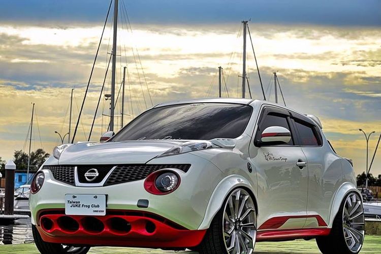Modifikasi Nissan Juke tampil menawan dengan jubah dual-tone putih-merah yang atraktif dan asup pelek Forgiato ukuran 20 inci. Simak ulasannya