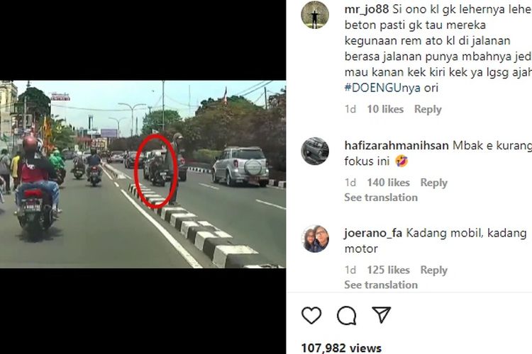 Pemotor Honda BeAT ini terpantau mau bermanuver ke kirinya. Tapi gara-gara enggak fokus, ending-nya malah jadi begini.