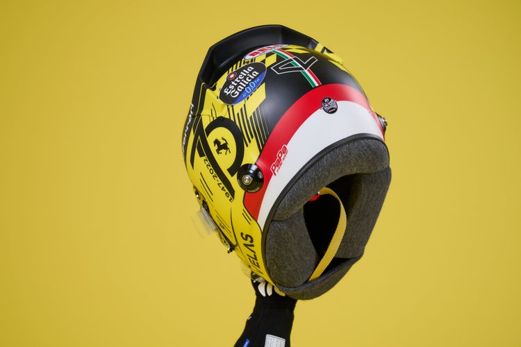 Charles Leclerc dan Carlos Sainz juga memakai helm spesial dalam ulang tahun 75 tahun tim Scuderia Ferrari pada F1 Italia 2022.