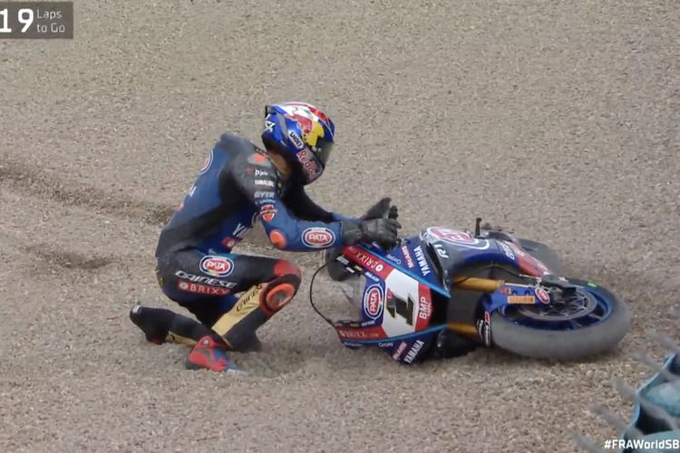 Meski sempat crash di awal Race 1 WorldSBK Prancis 2022, Toprak Razgatlioglu hampir masuk 10 besar di akhir balapan.