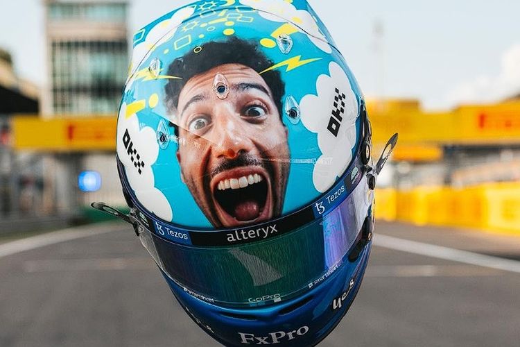 Keren Banget, Daniel Ricciardo Pakai Helm Spesial Tribute Valentino Rossi di F1 Italia 2022