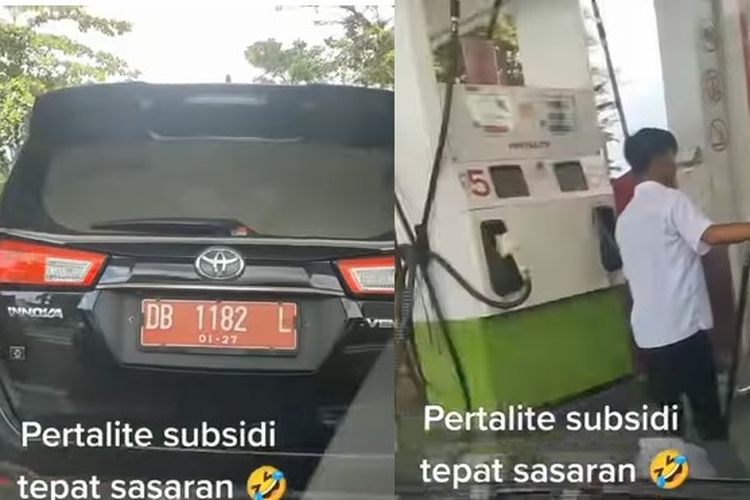 Sebuah Toyota Innova Venturer berpelat merah nekat isi BBM bersubsidi di SPBU Pertamina, warganet sebut subsidi salah sasaran.