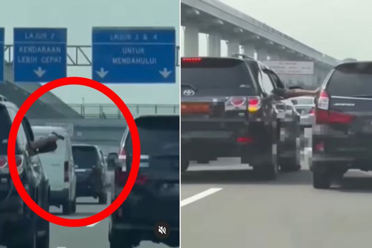 Video aksi koboi jalanan pengemudi Toyota Fortuner todongan pistol ke pengemudi Avanza di TOl Jagorawi bikin geger warganet.