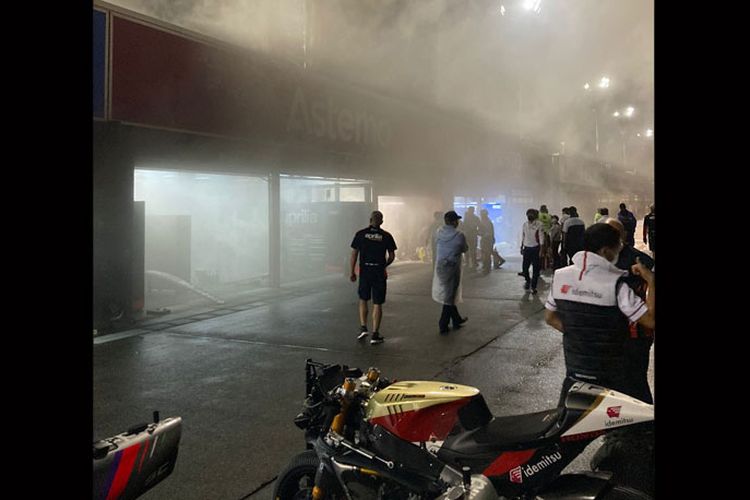 Kebakaran terjadi di garasi Elf Marc VDS Racing Team Moto2 jelang dimulainya MotoGP Jepang 2022, selamat berkat tim Aprilia dan Suzuki.