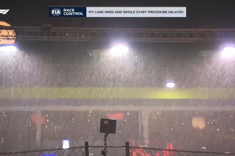 F1 GP Singapura yang dijadwalkan akan dimulai pada 8.00 malam waktu setempat (7.00 malam WIB) harus ditunda akibat hujan deras.