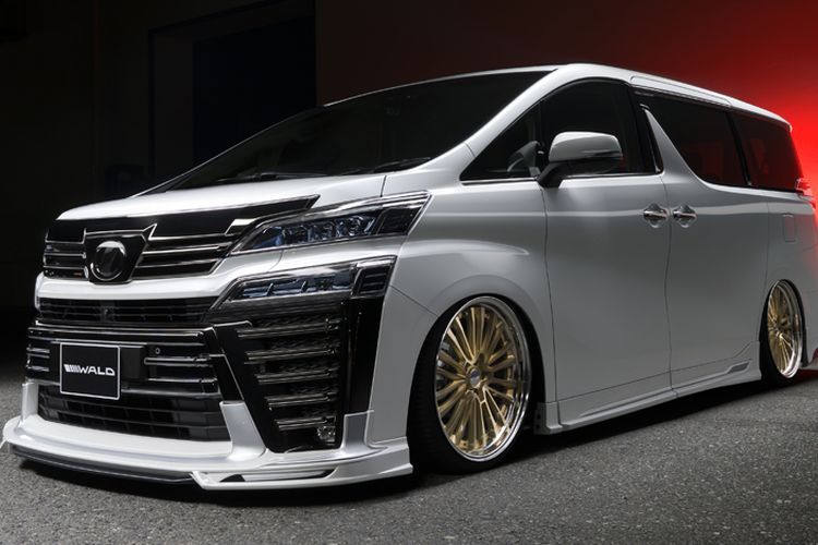 Modifikasi Toyota Vellfire garapan Wald International, Jepang ini pancarkan aura elagan asup body kit simpel dan pelek multi-spoke warna emas.