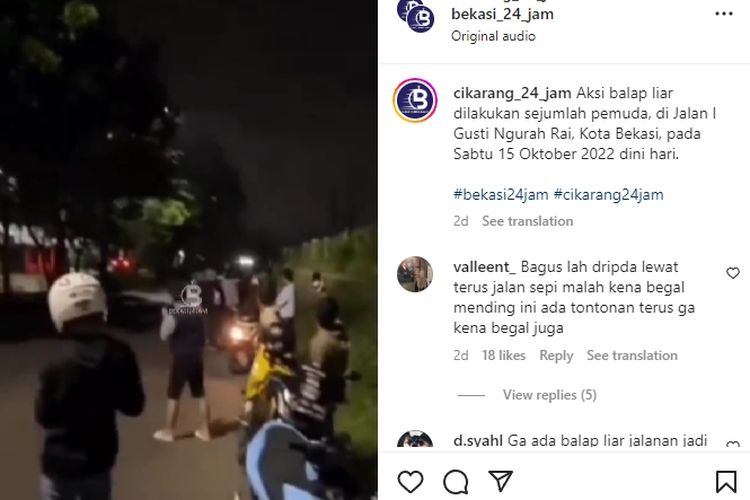 Beredar video aksi balap liar terjadi di Jalan I Gustri Ngurah Rai, Kota Bekasi, pada Sabtu (15/10/2022). Polisi sudah bergerak.