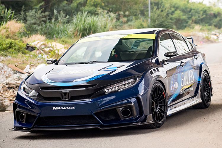 Modifikasi Honda Civic Turbo asal Thailand ini tampil kece dan agresif mengusung gaya racing, berhias decal unik serta banyak part serat karbon