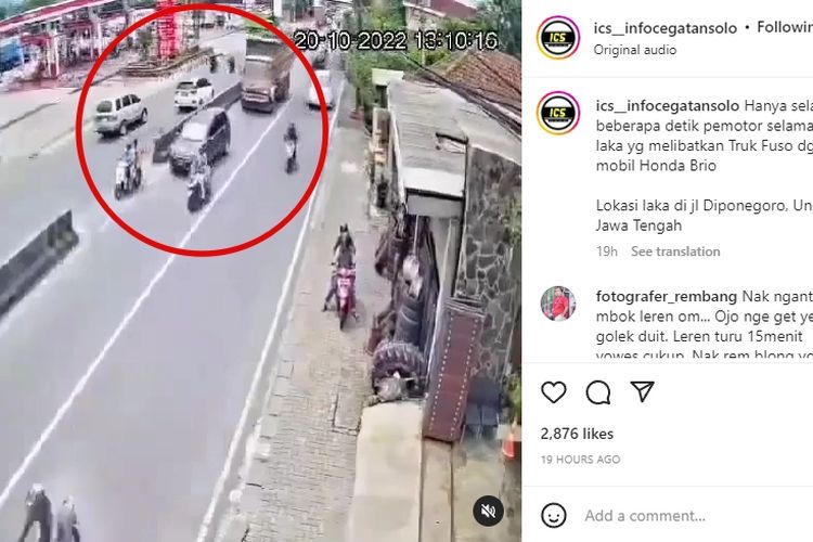 Beredar rekaman CCTV detik-detik pemotor selamat dari kecelakaan truk dan Honda Mobilio di Ungaran,Kamis (20/10/2022) lalu. Begini kejadiannya.