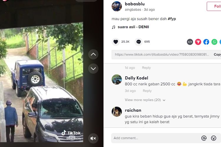 Viral video Toyota Fortuner dibikin malu sama Suzuki Jimny pas nanjak. Netizen saja sampai ikutan melongo melihat kejadiannya.