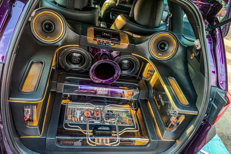 Asli memang modifikasi audio Honda BR-V ini bikin mata melongo karena sepintas mirip singgasana sultan yang bertabur emas.