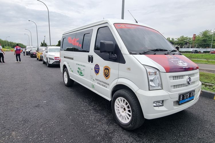 DFSK Gelora E ikut touring kendaraan listrik Jakarta-Bali yang digagas Kementerian Perhubungan, masyarakat diberi edukasi penggunaan mobil listrik.