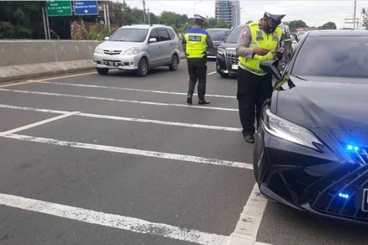 Mobil Lexus berstrobo tersebut terciduk saat melintas di ruas Jalan Tol Sedyatmo mengarah ke Bandara Soekarno-Hatta..