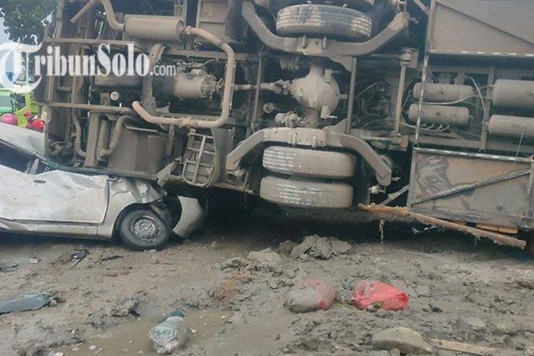 Bodi Toyota Avanza Remuk Tertindih Bus Garuda Mas di Sragen, Tujuh Orang Terluka