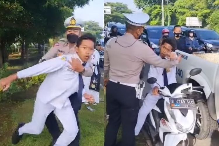 Seorang pelajar yang mengendarai Honda BeAT ngelunjak ke petugas saat ditegur, Ahmad Sahroni puji kesabaran petugas.