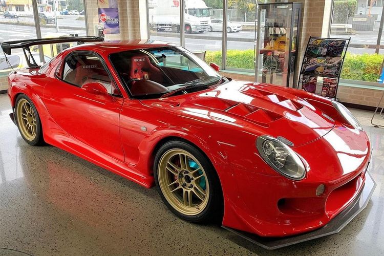 Modifikasi Mazda RX-7 garapan RE Amemiya, Jepang ini dibikin nyentrik dengan aplikasi Posche 911 dan asup body kit beraura street racing.