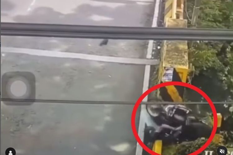Sebuah Yamaha NMAX hilang kendali saat hendak melintas di Jembatan Soekarno Hatta, Malang hingga masuk ke dalam parit.