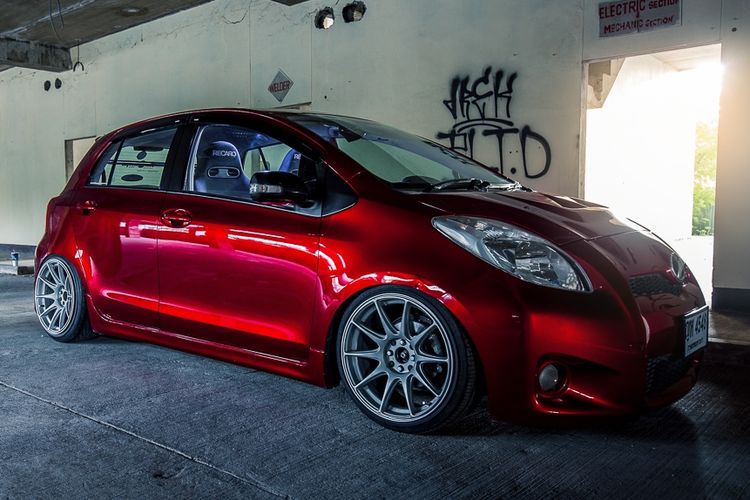 Meski punya baju luar elegan, Modifikasi Toyota Yaris bakpao merah merona ini justru mengemas kabin sporty dan oprek mesin minimalis
