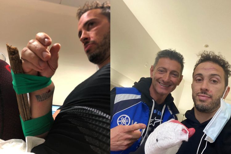 Mantan pembalap MotoGP, Andrea Dovizioso, baru saja menderita patah tulang pergelangan tangan karena sebuah kecelakaan motocross, dijamin ngilu.