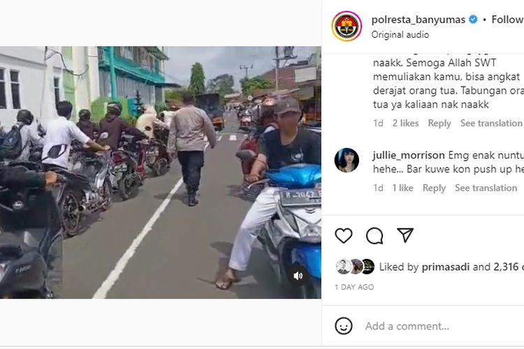 Puluhan siswa dibikin kapok, gara-gara resahkan warga. Ketahuan pesta miras, mereka diminta tuntun motor sampai Polsek Jatilawang.