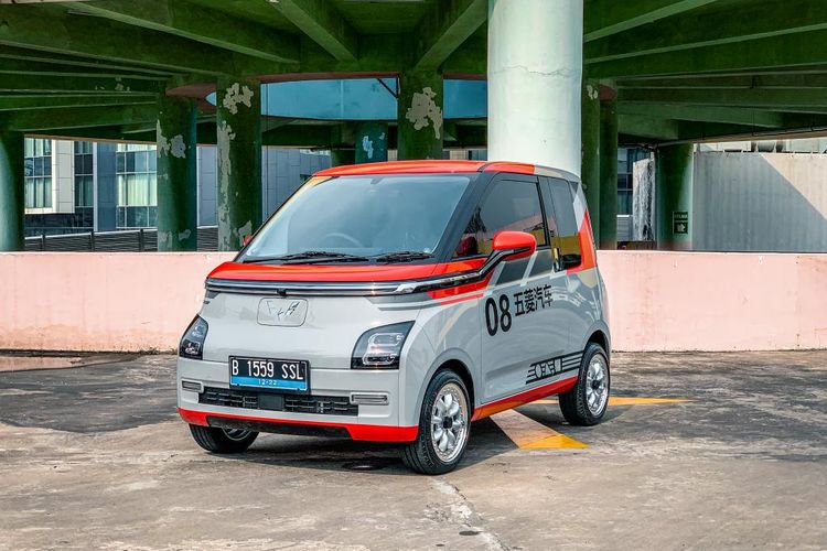 Jok masih dibungkus tapi modifikasi Wuling Air EV satu ini sudah tampil racing look. Pakai livery dan pelek langka ring 13 inci.
