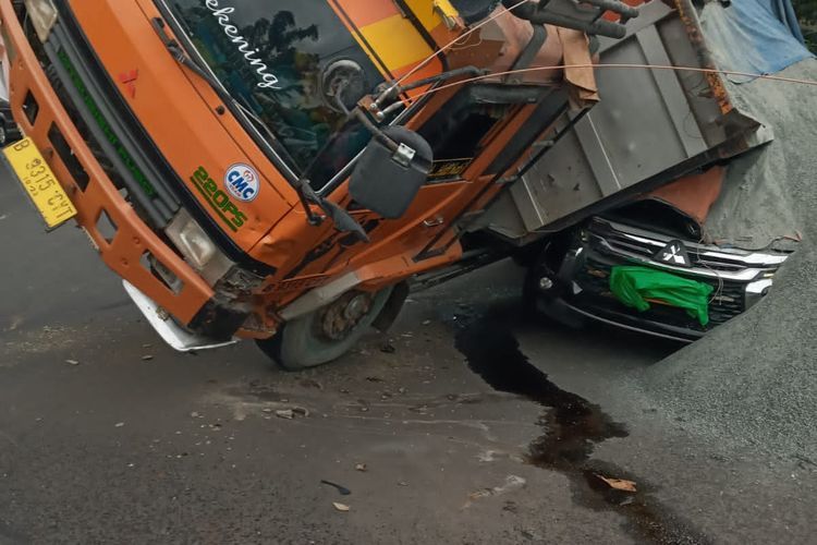 Hendak Putar Arah, Mitsubishi Pajero Sport Pelat TNI Tertimpa Truk Pasir di Cibubur