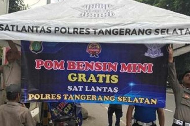 Polres Tangerang Selatan memberikan pelayanan cuma-cuma untuk pemudik yang kehabisan bensin di sepanjang jalur mudik Bitung