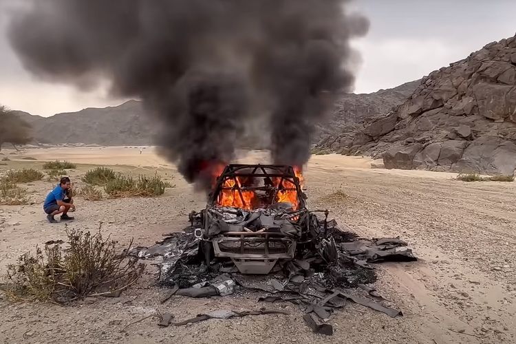 Ngerinya Reli Dakar 2023, Sebuah Mobil Terbakar Habis di Etape 1, Begini Videonya