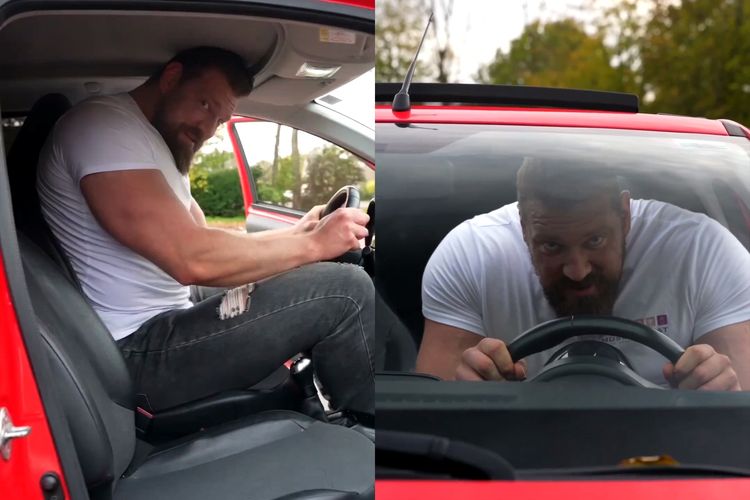 Saudara jauh Toyota Agya dijajal sama pria asal Belanda, Oliver Richters yang punya tinggi 218 cm. Auto kelihatan jadi kayak mainan tuh.