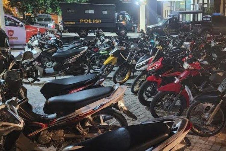Satlantas Polres Kediri kembali amankan motor pelaku balap liar di Kabupaten Kediri, Jawa Timur pada Minggu (15/01/2023) malam.
