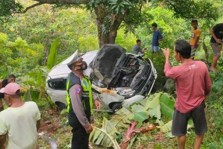 Sebuah Daihatsu Ayla mengalami kecelakaan tunggal di Jalan Desa Jurusan Tigawasa-Kaliasem hingga masuk ke jurang 25 meter.