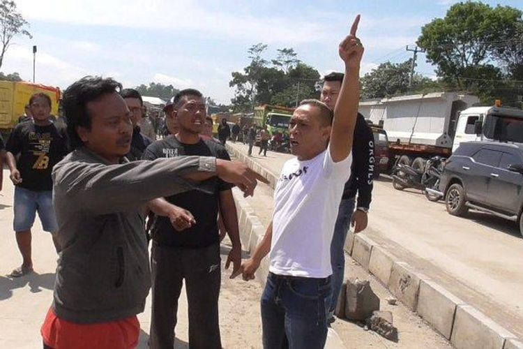 Bentrokan nyaris terjadi antar sesama sopir truk di jalan ke lokasi proyek Jalan Tol Cisumdawu, Selasa (24/01/2023). Penyebabnya apa sih?