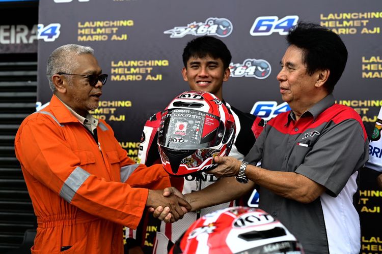 Pembalap Indonesia, Mario Aji, akhirnya menunjukkan helm barunya untuk kejuaraan dunia Moto3 2023, ada motif batik Telaga Sarangan.